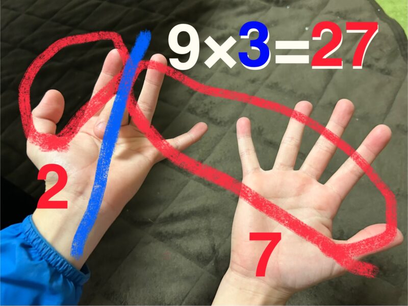 どこかの塾の先生がテレビで教えてくれた簡単な9の段のやり方を息子に教えてみました。